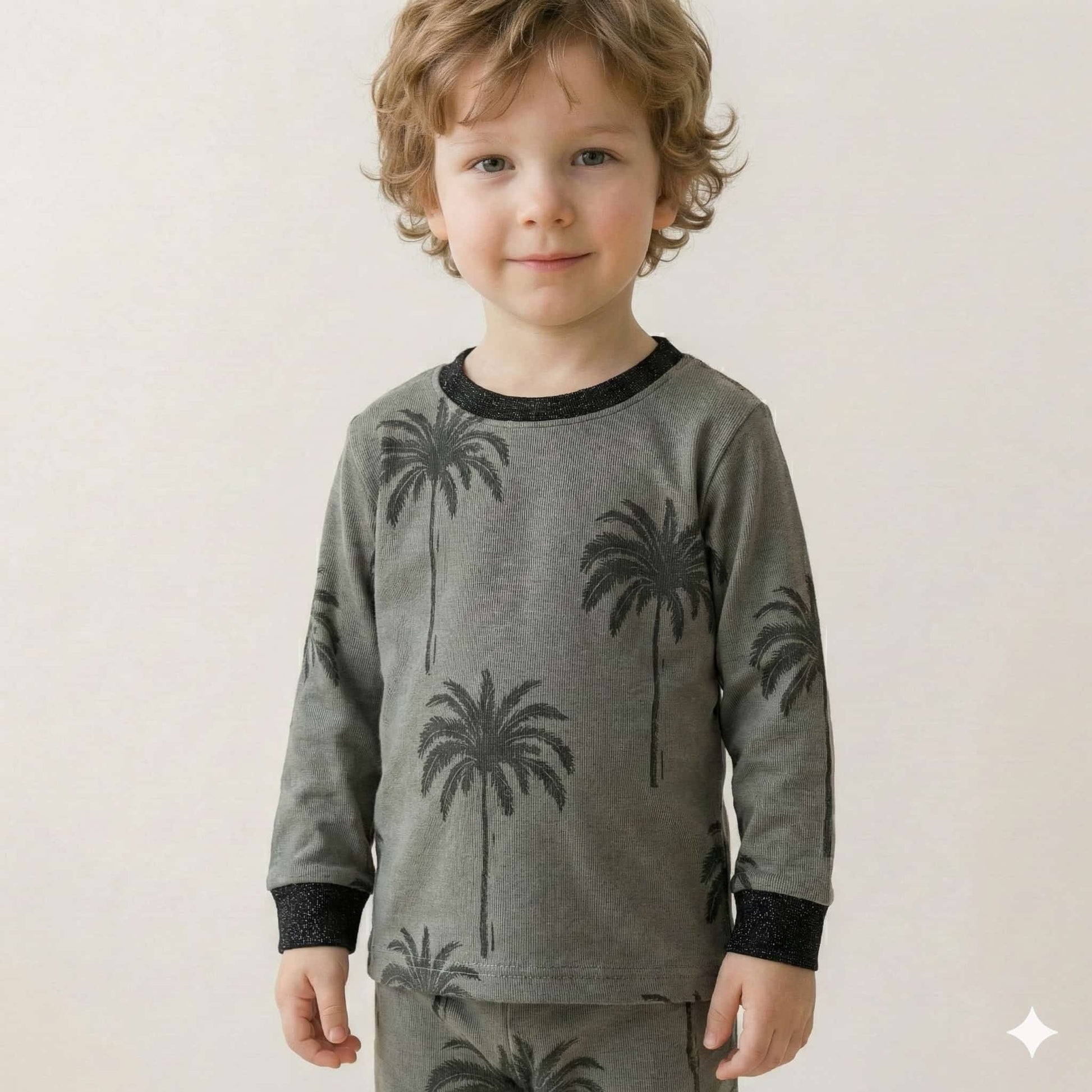 Palm Trees Boy Pajama Set-Grey
