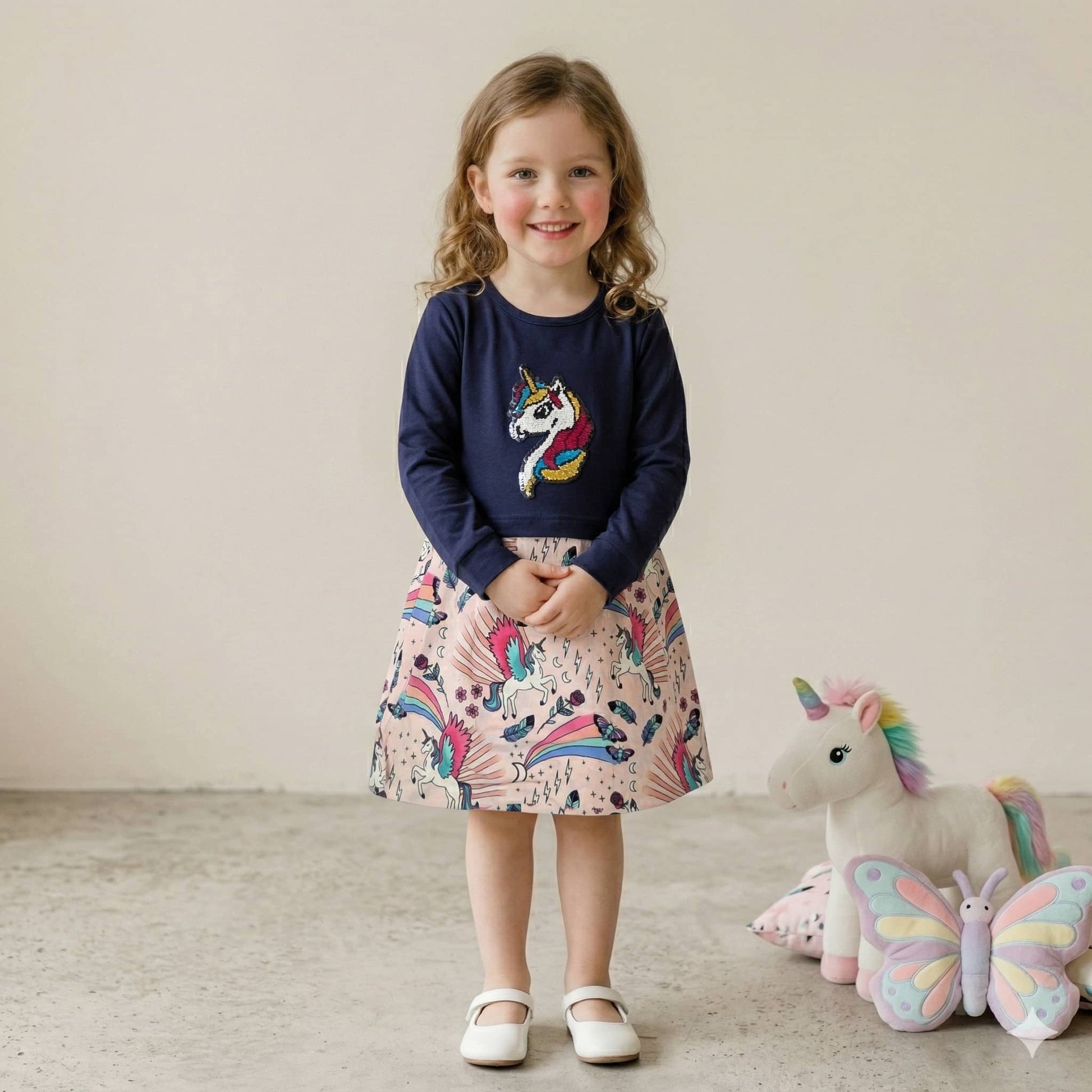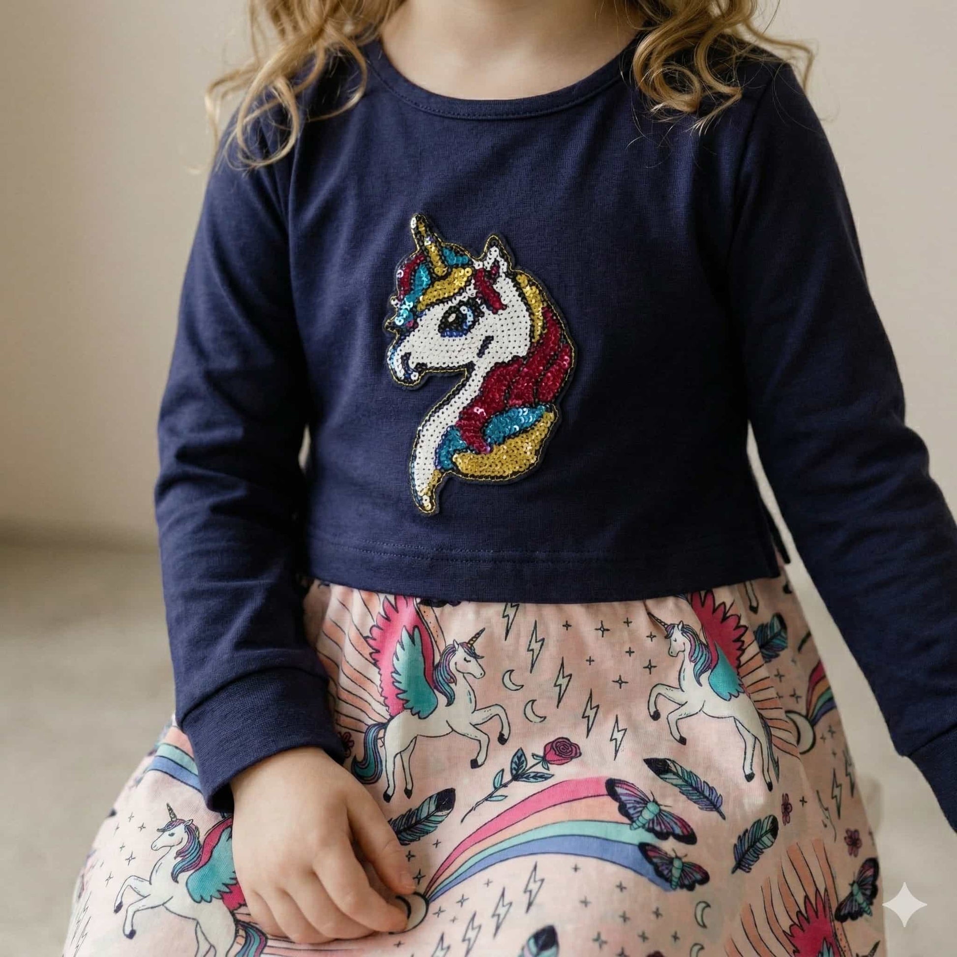 فستان يونيكورن للبنات - أزرق داكن