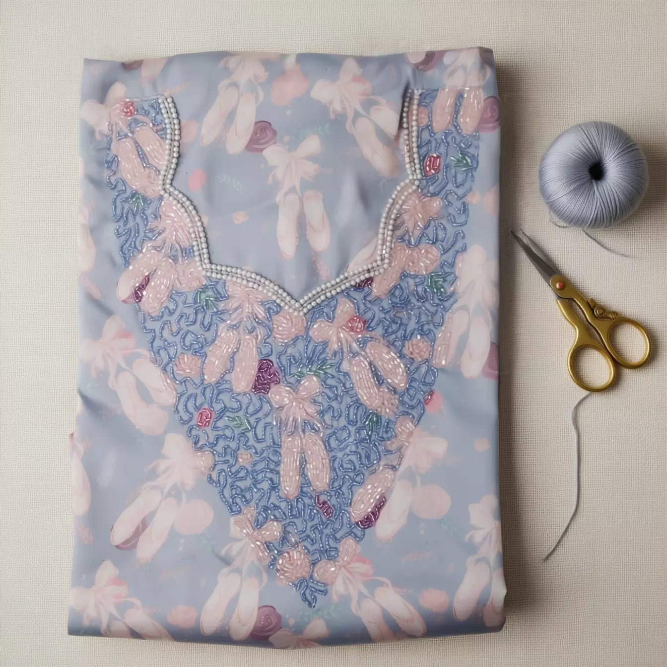 ✨ Exquisite Embroidery: The front is adorned with stunning hand-embellished embroidery featuring intricate beaded work, adding a sparkling touch to the Cinderella motifs.