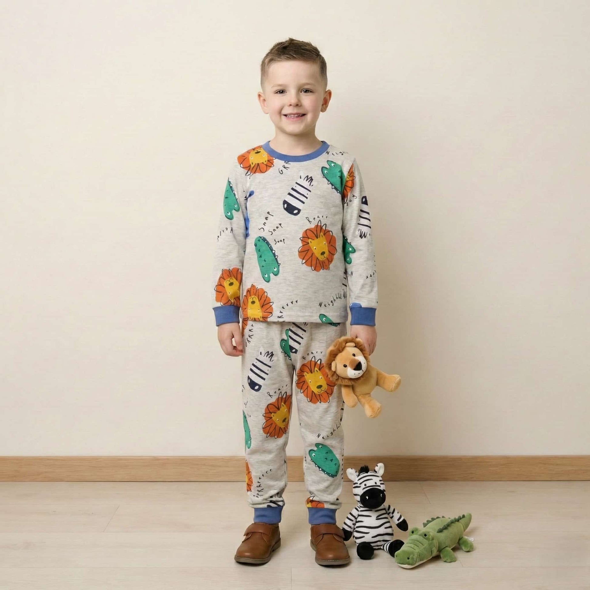 Jungle Roar Boy Pajama Set-Grey