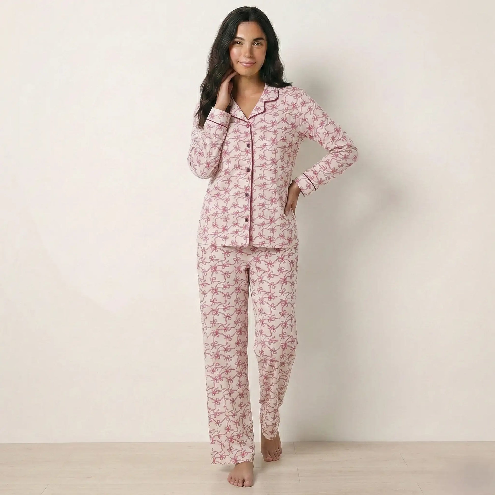 Pink Bow Women Pajama Set- Pink