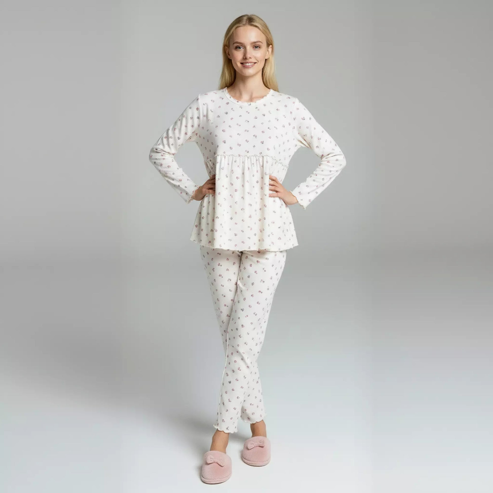 Blossom Flower Women Pajama Set- Beige