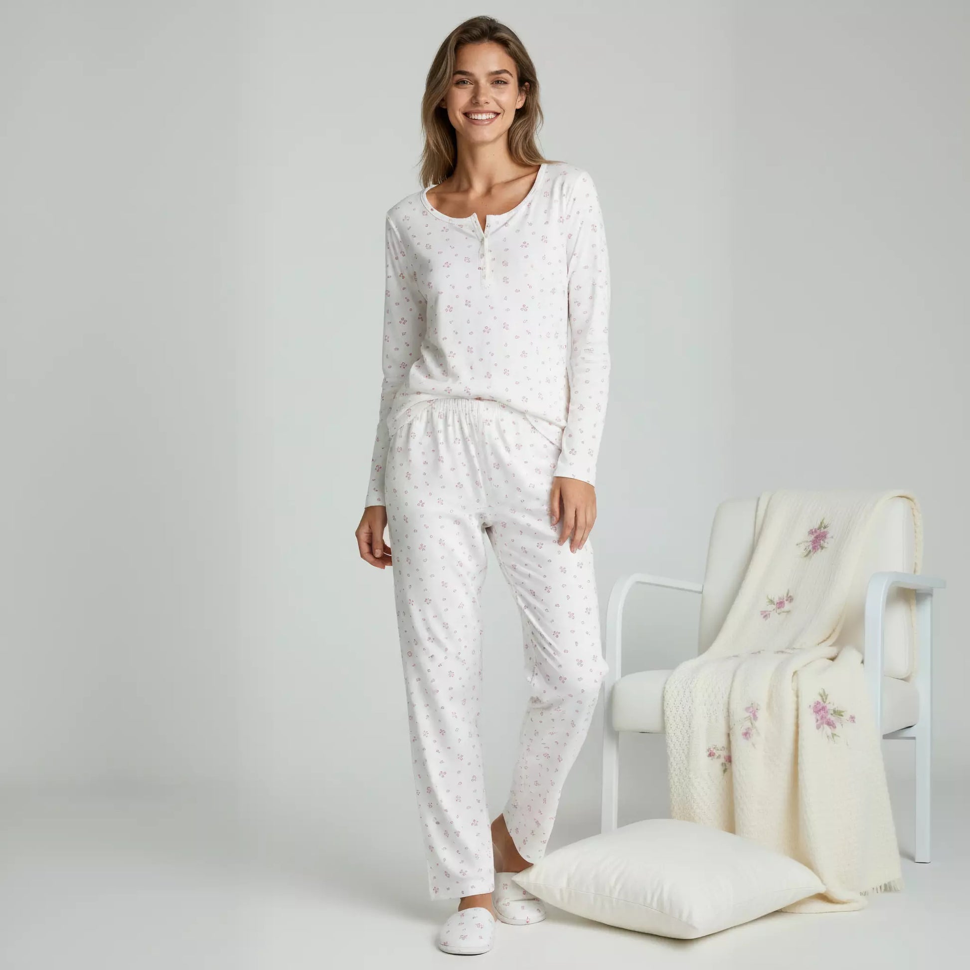 Made from a soft ribbed cotton with a lettuce edge, this snug-fitting 2 pc pajama and t-shirt set is perfect for keeping your little one extra comfy and cozy, with each set featuring a long sleeve top with a crewneck collar and full-length bottoms with an elasticated waistband.