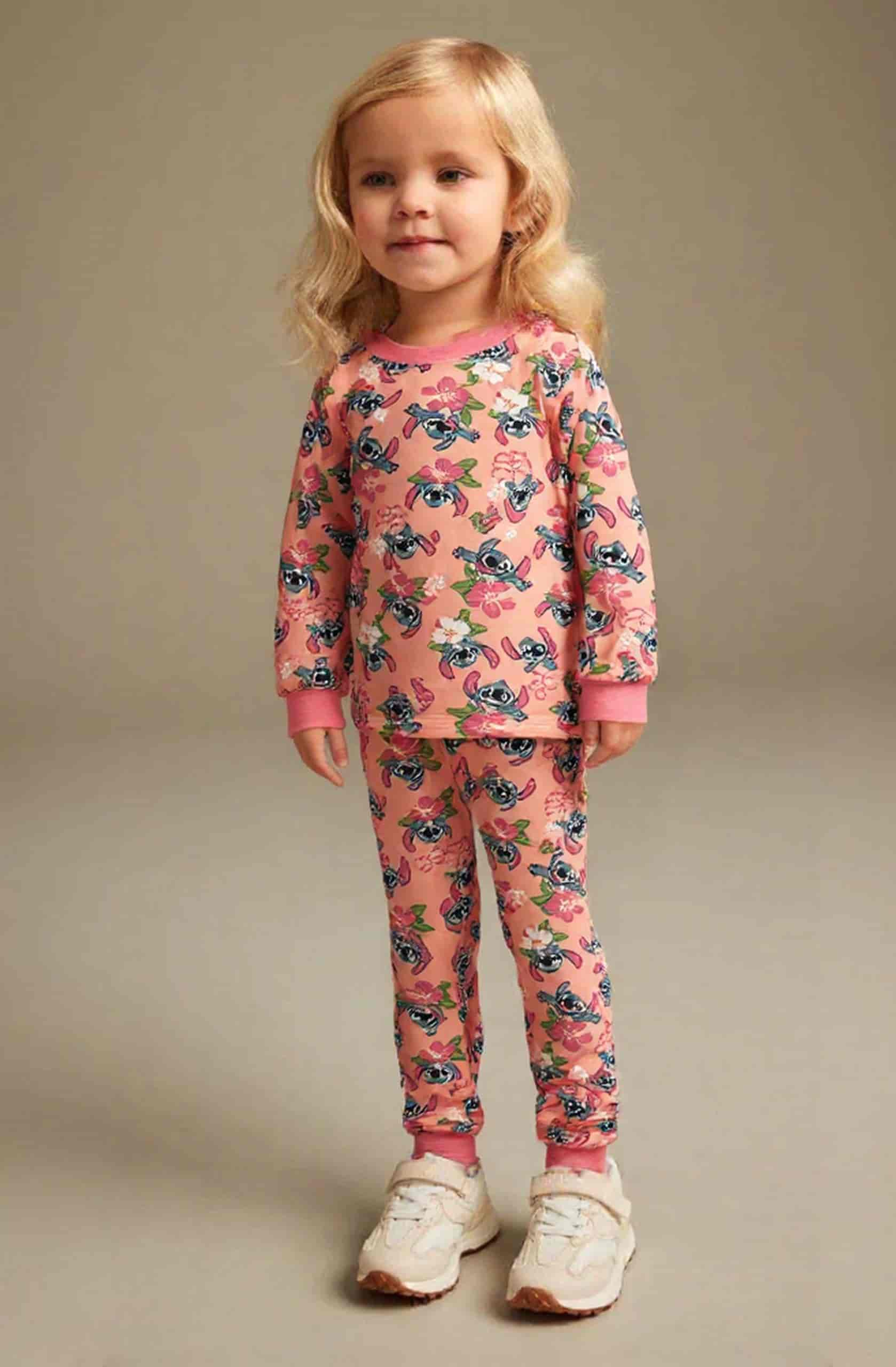 Stich Girl Cotton Fleece Pajamas Set- Peach